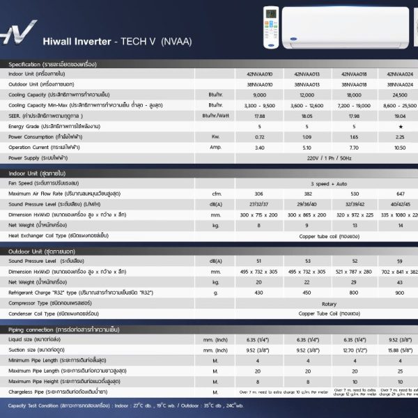 แอร์ผนัง CARRIER รุ่น 42NVAA TECH-V INVERTER ปี 2569