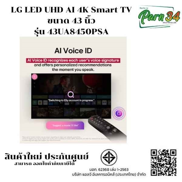 LG LED UHD AI 4K Smart TV ขนาด 43 นิ้ว รุ่น 43UA8450PSA สินค้าใหม่ ประกันศูนย์ 1 ปี