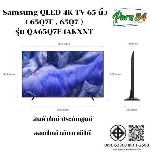 Samsung QLED 4K TV ขนาด 65 นิ้ว Q7F Series ( 65Q7F , 65Q7 ) รุ่น QA65Q7F4AKXXT สินค้าใหม่ ประกันศูนย์