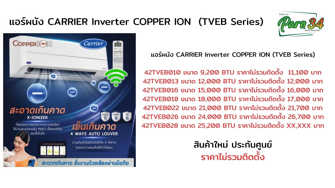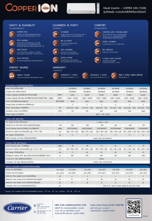แอร์แคเรียร์ Carrier COPPER ION Inverter R32 (TVEB Series)