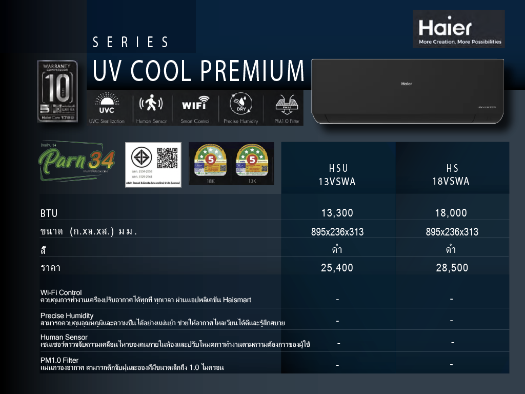 | HSU-18VSWA | 18,000 | 28,500 บาท |