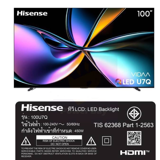 HISENSE 100″ รุ่น 100U7Q TV U7Q Smart TV 4K VIDAA Mini-LED สินค้าใหม่ ประกันศูนย์