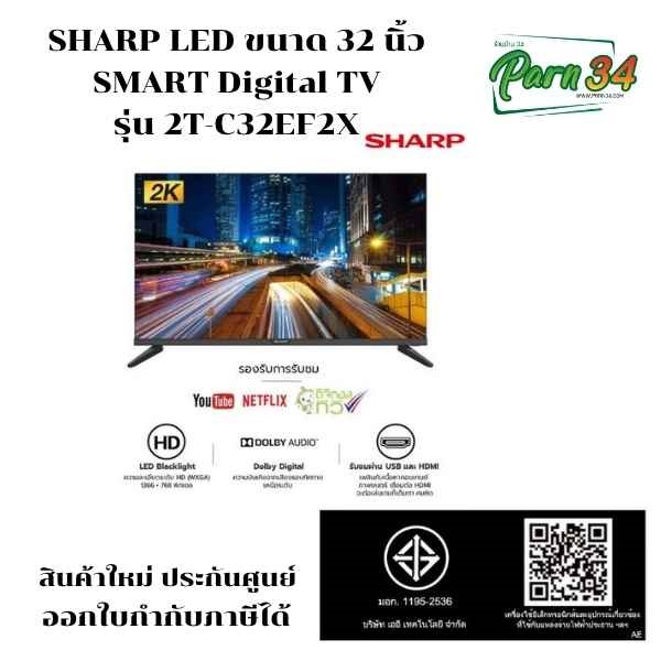 SHARP LED ขนาด 32 นิ้ว SMART Digital TV รุ่น 2T-C32EF2X สินค้าใหม่ ประกันศูนย์