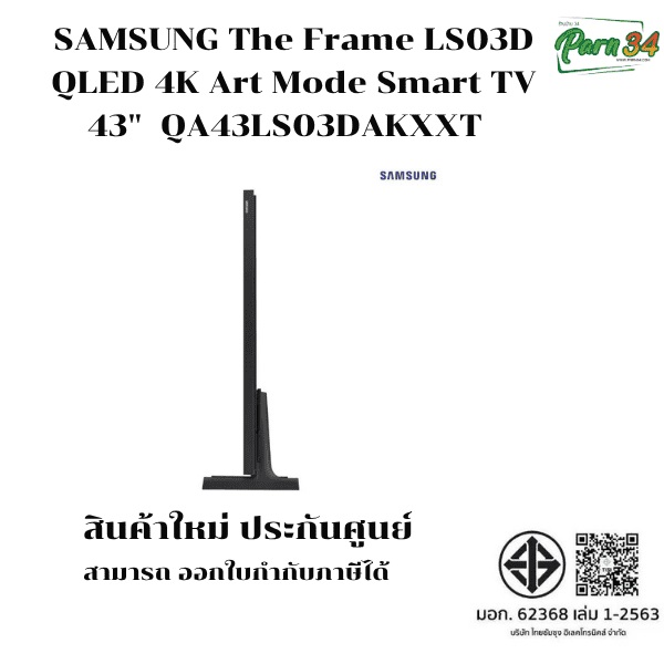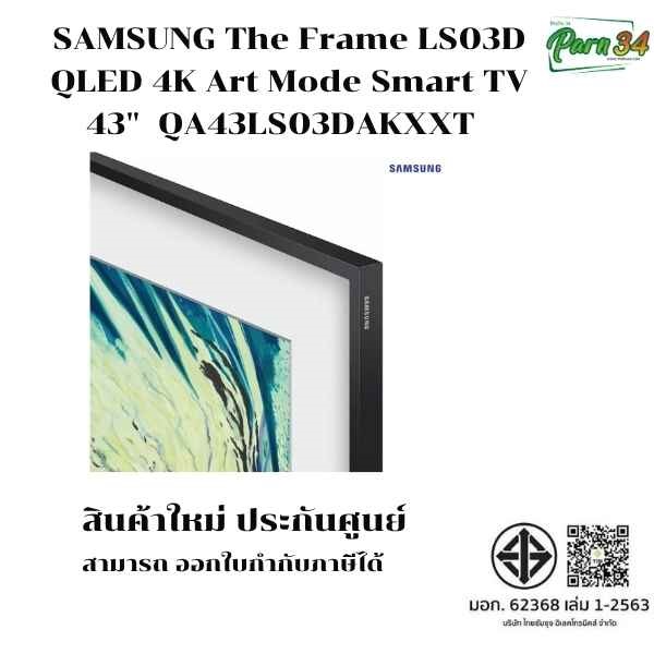 43″ SAMSUNG The Frame LS03D QLED 4K Art Mode Smart TV รุ่น QA43LS03DAKXXT สินค้าใหม่ ประกันศูนย์ ( สำหรับ The Frame กรอบรูปให้เลือกหลายสี เป็นอุปกรณ์เสริมซื้อเพิ่มที่ศูนย์ได้เอง )
