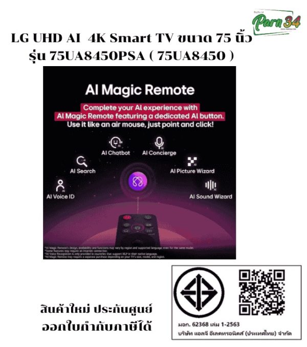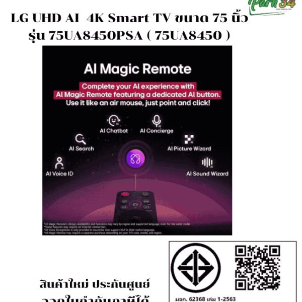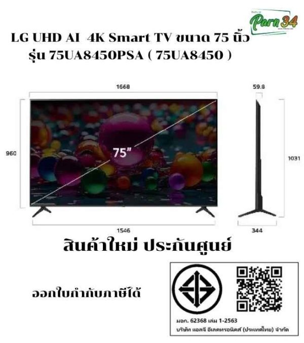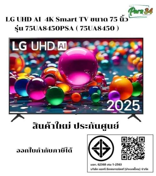 LG UHD 4K Smart TV ขนาดจอ 75 นิ้ว รุ่น 75UA8450PSA  สินค้าใหม่ ประกันศูนย์
