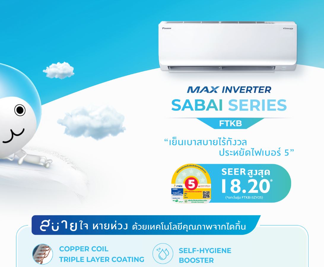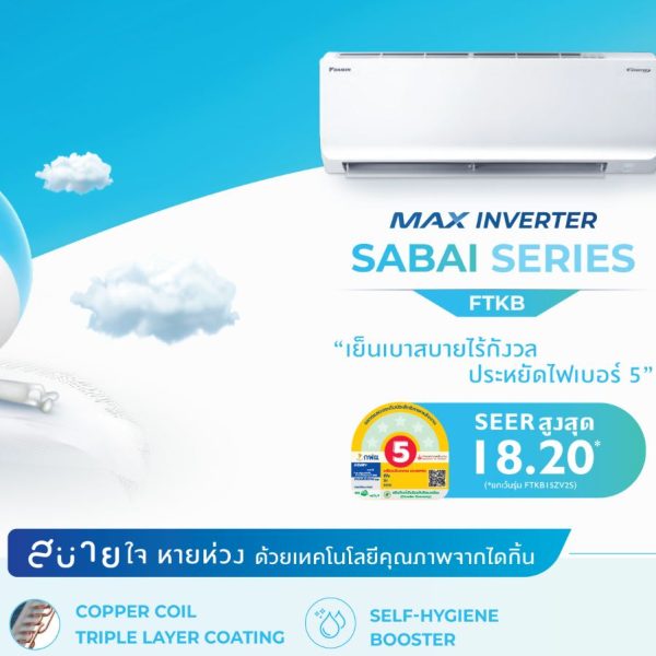 MAX INVERTER SABAI SERIES รุ่น FTKB18ZV2S ราคา 16,800 บาท สินค้าใหม่ ประกันศูนย์ ราคาไม่รวมติดตั้ง